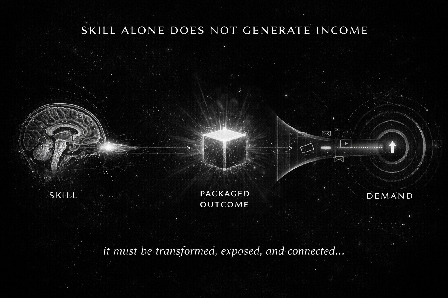 So yes, skill on its own does not generate income. It must be transformed into a packaged outcome, exposed through distribution, and connected to demand.