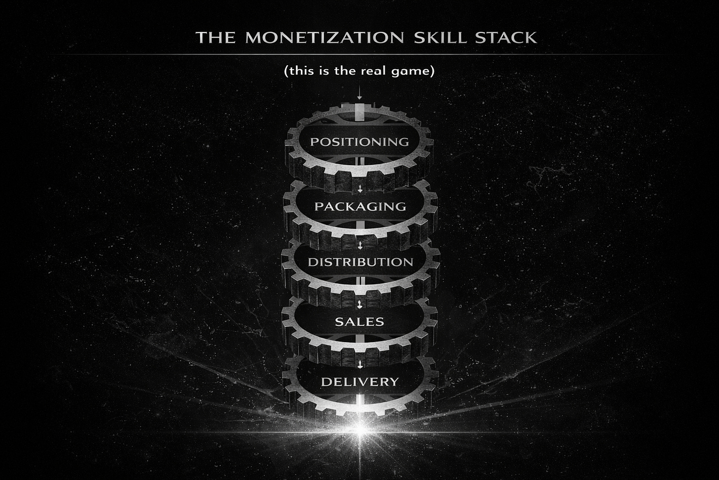 Most people have skills that can be monetized but weak monetization knowledge. Very few are good at both being very good at a specific skill and knowing how to monetize it properly.